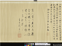 Wang Chen-p'eng, native to Chekiang Province, was favored as a painter and served at court in various positions throughout his career. This work depicts the Pond of Golden Brightness, which was opened