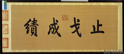 (缂丝乾隆十全记)十全记。昨准廓尔喀归降。命凯旋班师。诗有十全大武扬之句。盖引而未发。兹特叙而记之。夫记者志也。虞书。朕志先定。乃在心。周礼。春官掌邦国之志。乃在事。旅獒志以道宁。则兼心与事而言之。然总不出夫道。得其道。乃能合於天。以冀承乎贶。则予之十全武功。庶几有契於斯。而可志以记之乎。十功者。平准噶尔为二。定回部为一。扫金川为二。靖台湾为一。降缅甸安南各一。即今之受廓尔喀降。合为十。其内地之三