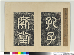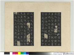 孔子庙堂之碑。(篆书)。□□□(孔子庙)堂之碑。太子中舍人。行着作郎。臣虞世南奉敕撰并书。司徒并州牧太子左千□(牛)率。兼检校安北大都护。相王旦书碑额。□□□(微臣属书)东观。预闻前史。若乃知几其神。惟睿作圣。玄妙之境希夷不测。然则三五迭兴。典坟斯着。神□□(功圣)迹。可得言焉。自肇立书契。初分爻象。委裘垂拱之风。革夏翦□□□(商之业)。□□(虽复)质文殊致。进让罕同。靡不拜洛观河。膺符受命。名居