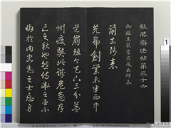 敬胜斋法帖第三十六。(隶书)。 御临王宠书前後出师表。(楷书)。 前出师表。先帝创业未半。而中道崩殂。今天下三分。益州疲獘。此诚危急存亡之秋也。然侍卫之臣。不懈於内。忠志之士。忘身於外者。盖追先帝之殊遇。欲报之於陛下也。诚宜开张圣听。以光先帝遗徳。恢弘志士之气。不宜妄自菲薄。引喻失义。以塞忠諌之路也。宫中府中。俱为一体。陟罚臧否。不宜异同。若有作奸犯科。及为忠善者。宜付有司。论其刑赏。以昭陛下
