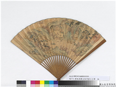 书画典藏-明陆士仁画桃源图文徵明书七言律诗 成扇