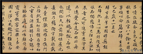 归去来兮辞。余家贫。耕植不足以自给。幼稚盈室。缾无储粟。生生所资。未见其术。亲故多劝余为长吏。脱然有怀。求之靡涂。会有四方之事。诸侯以惠爱为德。家叔以予贫苦。遂见用为小邑。于时风波未静。心惮远役。彭泽去家百里。公田之利。足以为酒。故便求之。及少日。眷然有归欤之情。何则。质性自然。非矫励所得。饥冻虽切。违已交病。常从人事。皆口腹自役。於是怅然慷慨深愧平生之志。犹望一稔。当歛裳霄。逝寻程氏。妹丧于武昌
