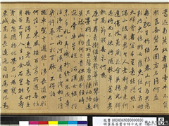 书古诗十九首四通。二为高丽纸。一为绢书。此则宋藏纸。仿褚河南哀册。乙卯(西元一六一五年)十月朔。其昌识。