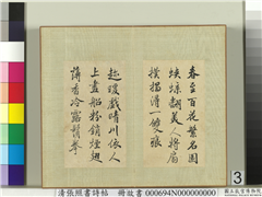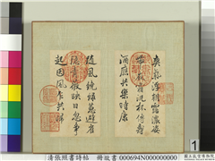 (第一则)爽气浮朝露。浓姿带夜霜。泛杯传寿酒。应共乐时康。(第二则)随风绕绿蕙。避雀隠青薇。映日忽争起。因风乍共归。 (第三则)未植银宫衣里。宁移玉殿幽。枝生无限月。花满自然秋。(第四则)入院依琱槛。穿楼扑镜函。阿谁最怜惜。描在泥金衫。(第五则)春至百花繁。名园蛱蝶翻。美人将扇扑。搨得一双痕。(第六则)趂暖戏晴川。依人上画船。粉销烟翅薄。香