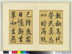 溪头夜雨足。门外春水生。筠篮浸浅碧。嘉榖抽新萌。西畴将有事。耒耜随晨兴。只鸡祭勾芒。再拜祈秋成。(浸种)。 东皋一犂雨。布榖初催耕。绿野暗春晓。乌犍苦肩頳。我衔劝农字。杖策东郊行。永怀歴山下。法事闗圣情。(耕) 雨笠冒宿雾。风蓑拥春寒。破块得甘霔。啮塍浸微澜。泥深四蹄重。日暮两股酸。谓彼牛後人。着鞭无作难。(杷耨)。 Ŋ
