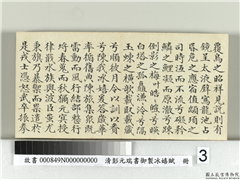 御制冰嬉赋有序。陆行之疾者。吾知其为马。水行之疾者。吾知其为舟为鱼。云行之疾者。吾知其为鵾鹏鵰鹗。至於冰。则向之族。莫不躄躠。胶滞滑擦。而莫能施其技。国俗有冰嬉者。护膝以芾。牢鞵以韦。或底含双齿。使啮凌而人不踣焉。或荐铁如刀。使践冰而步逾疾焉。较东坡志林所称。更为轻利便捷。惜自古无赋者故赋之。其辞云。岁暮星穷。和叔告冬。阴凝北陆。律中黄钟。景长而土圭可测。瑞兆而云物皆同