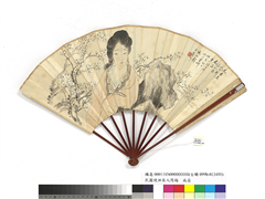 书画典藏-民国倪田美人倚梅陆恢花猫 成扇 倪田美人倚梅