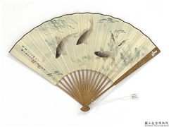 民国吴青霞鱼虾宋育德楷书乐莲裳诗 成扇 吴青霞鱼虾