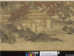 唐寅(西元一四七○-一五二三年),吴人(今江苏苏州)。字子畏,一字伯虎,号六如。赋性疏朗,狂逸不羁。弘治戊午举南京解元,画师周臣而远过之。为明四大家之一。 此卷作江干岩岸。杂林疏朗,渔舍水榭座落丹枫岸石掩映间。水面舟艇容与,舟上渔人或垂纶放钓,或横笛濯足,或拍掌击节和歌。屋内则促膝对酌,或凭栏观钓,或策杖闲步。通幅以中锋湿笔斧劈斫趯,用笔劲利,设色明艳,清雅幽丽,神采逼人。