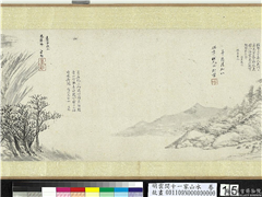 乙卯(西元一六一五年)秋日画。乙丑秋日题。汪明际(西元一六二五年)为偶萍禅友。