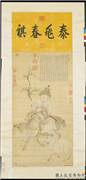 易经上一月是泰卦,泰卦的卦象是「三三三」,「三」是乾(三阳)代表天,「三三」是坤(三阴),代表地。乾在下坤在上,乾坤交泰是一种好的象徵,显示天地间的万物都有生意,在一年的开始能平安通泰,那麽整年就能顺利如意。因「羊」与「阳」谐音,所以这幅画描绘牧童拿小红果,逗着三只羊,作为三阳开泰的吉祥表徵。
