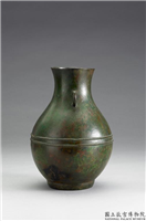 圆壼,侈口、颈微缩、环耳、鼓腹、圈足,腹一侧有环耳。腹饰弦纹。